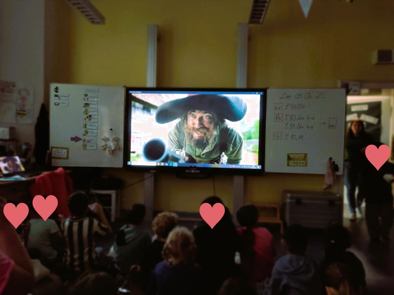 In den letzten Wochen hat die 2a ganz fleißig das Buch Räuber Hotzenplotz gelesen. Zum Ende gab es am 06. Juni einen Kino-Abend, natürlich mit Popcorn und Getränken. Die kleinen Lese-Paten aus der 1. Klasse waren auch eingeladen. Ein wunderschöner Abschluss zur Lektüre.